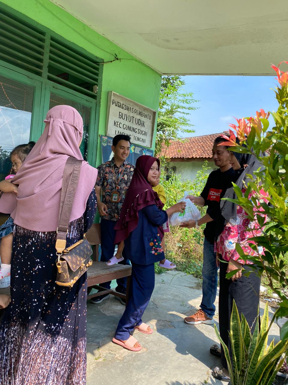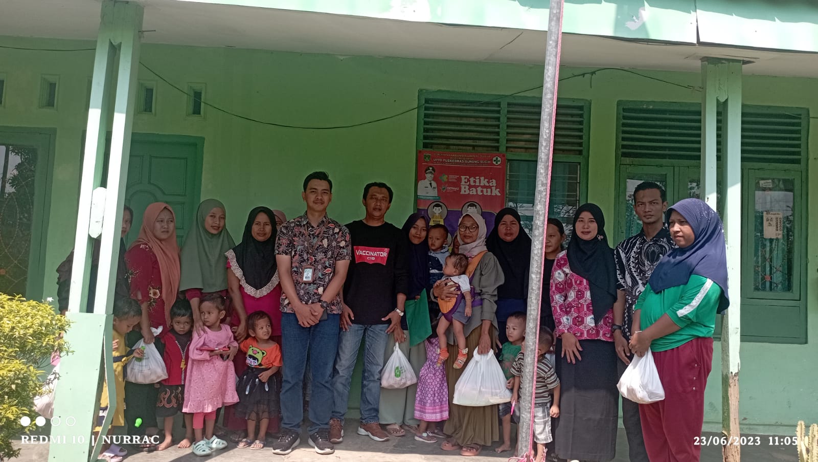 Sedekah Telur untuk anak anak stunting di desa Buyut Udik 23 Juni 2023 kolaborasi RS Harapan Bunda dan Puskesmas Gunung Sugih.